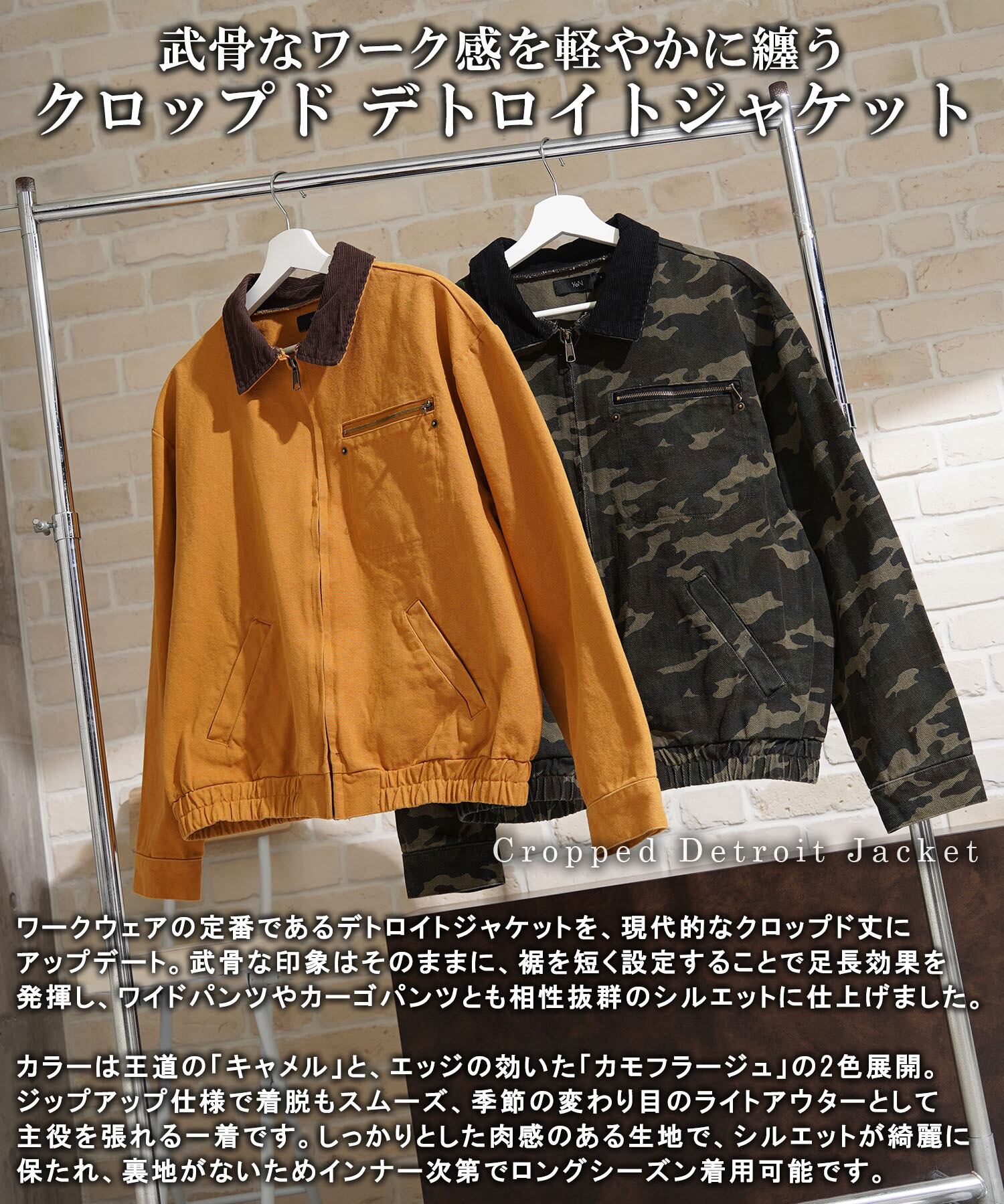 ワークウェアの定番であるデトロイトジャケットを、現代的なクロップド丈にアップデート。