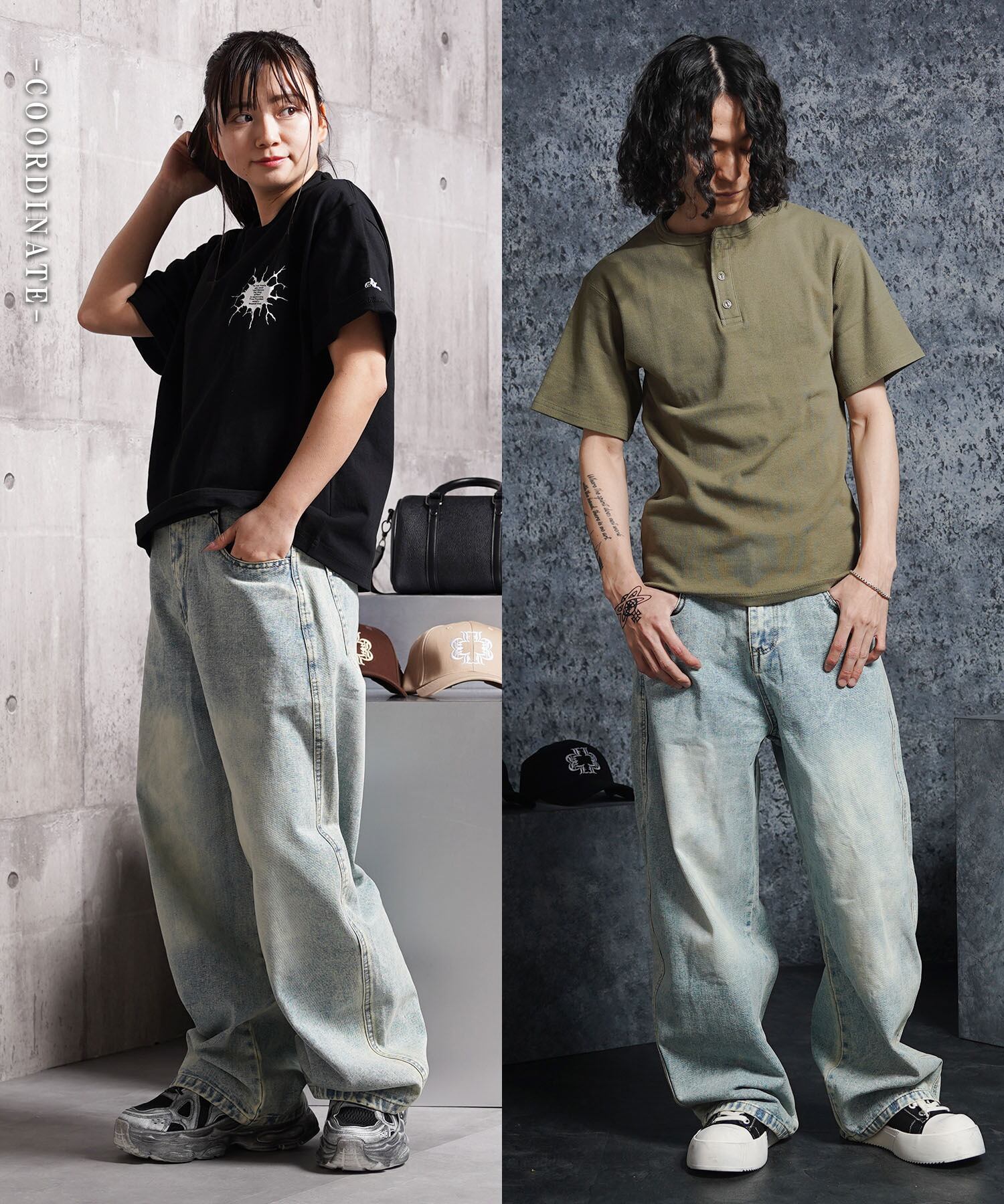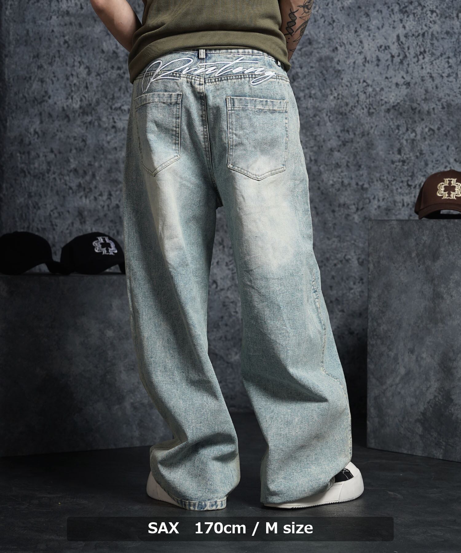 デニム デニムパンツ ロゴ 刺繍 ジーンズ ジーパン メンズ レディース ボトムス ワイドパンツ バギーパンツ ワイドデニム 長ズボン ズボン 新作 トレンド