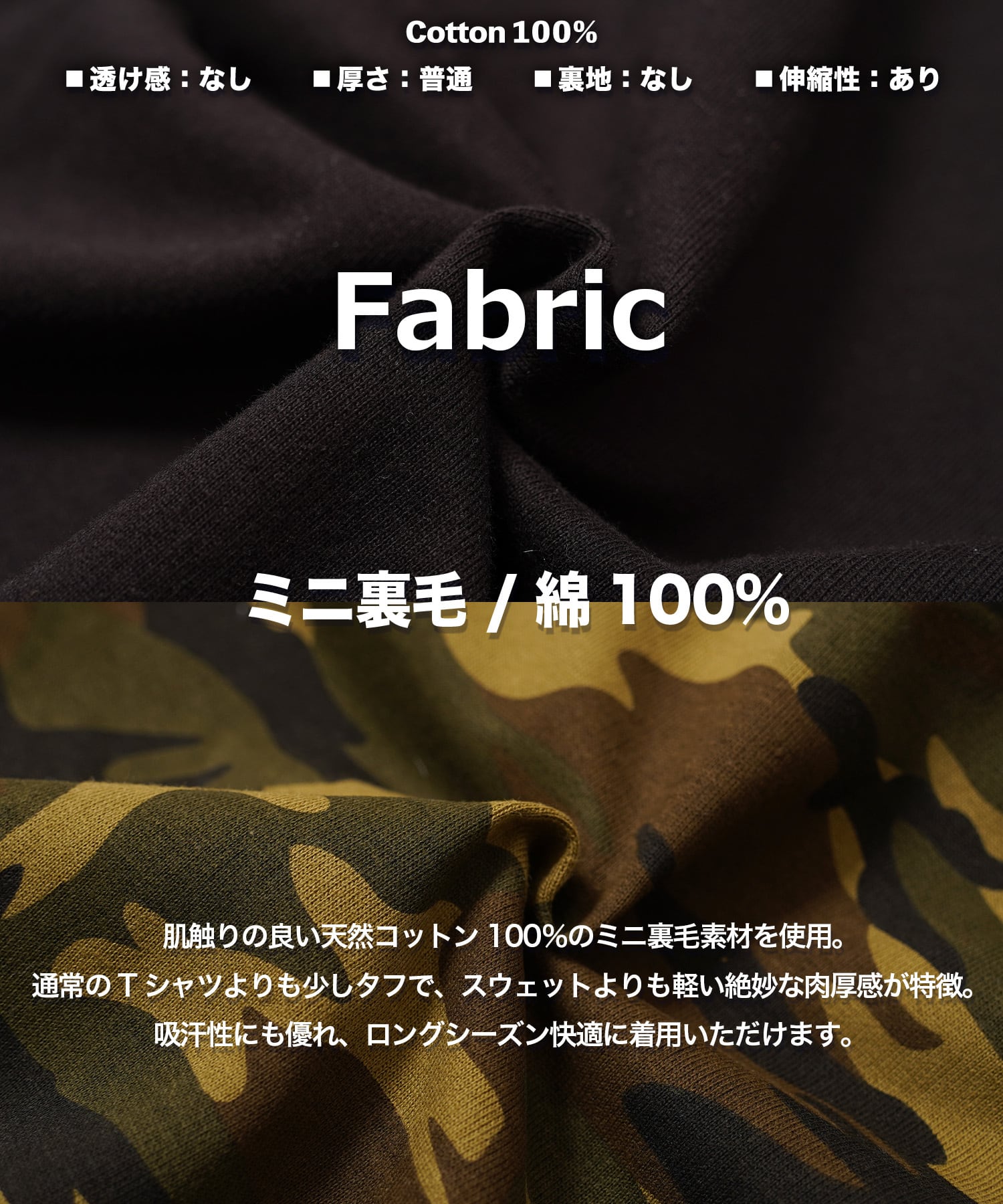 肌触りの良い天然コットン100%のミニ裏毛素材を使用。