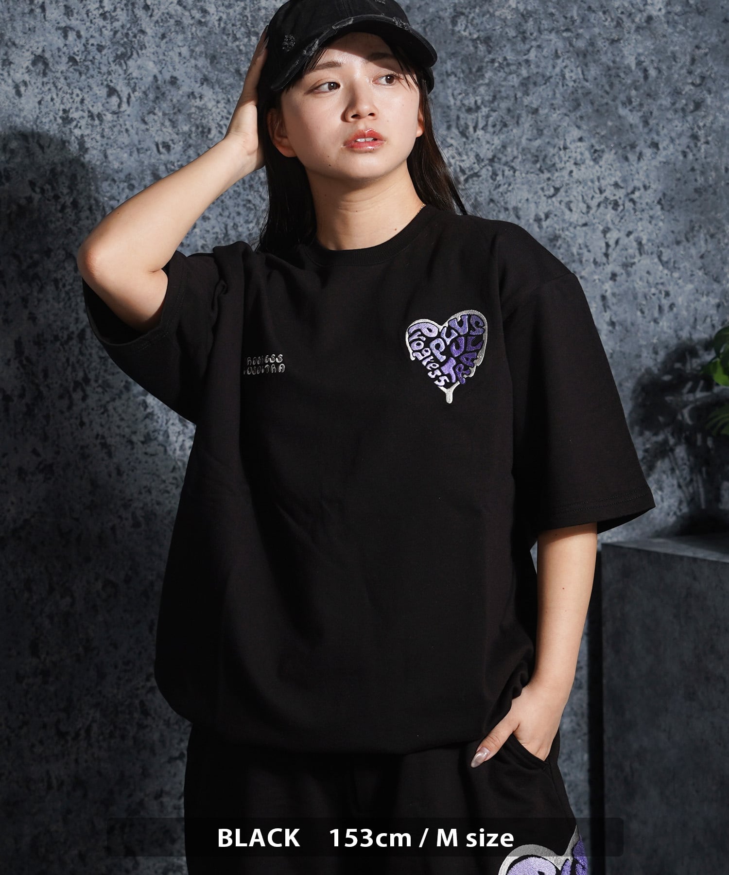 【1111clothing】Mini-fleece Heart Sagara Embroidery T-shirt