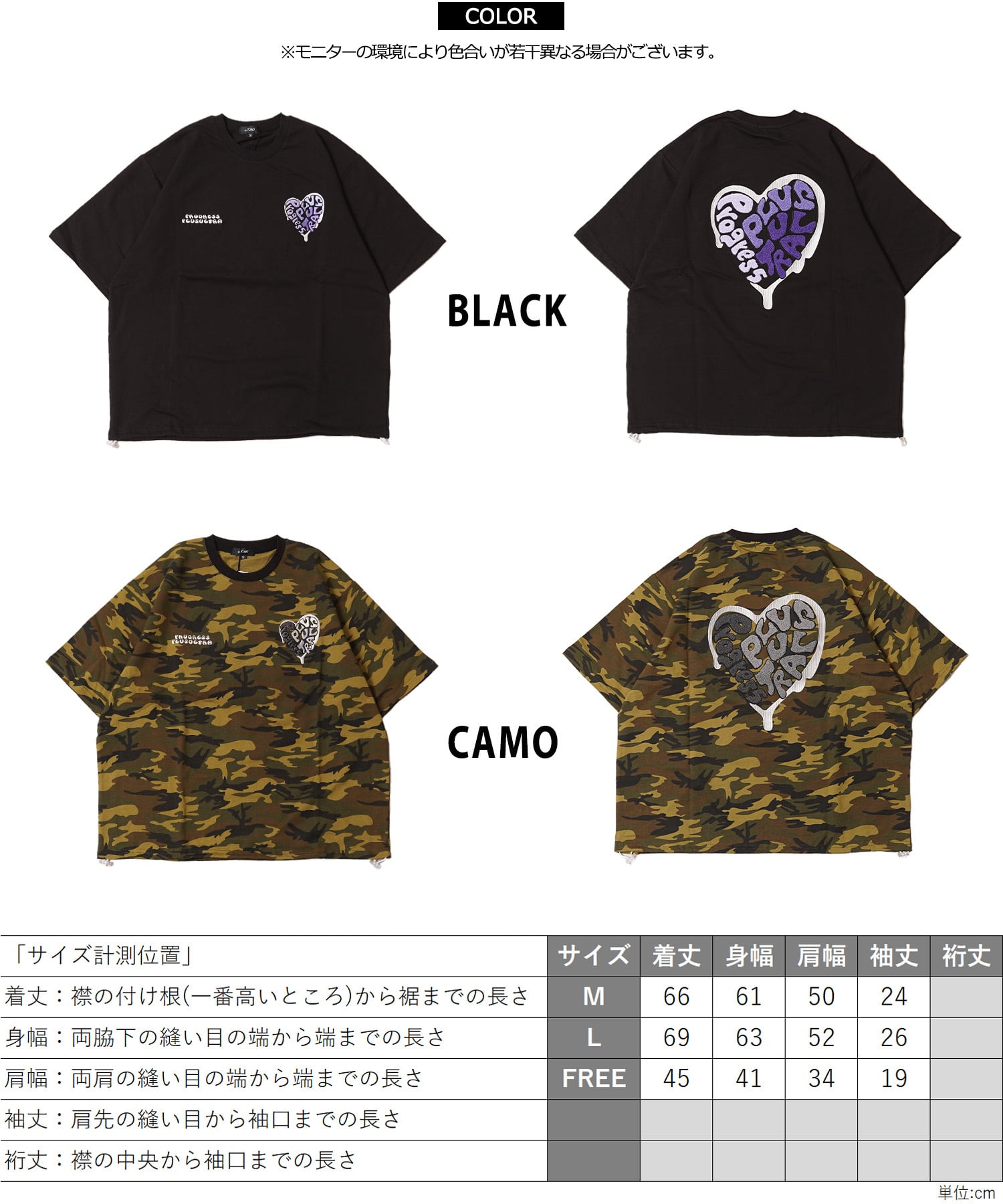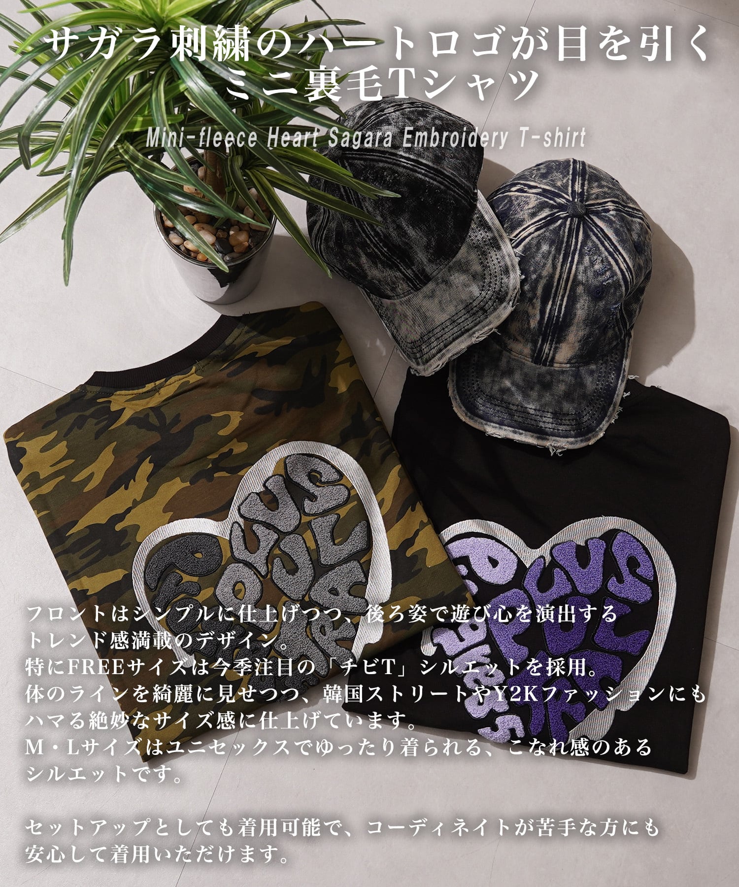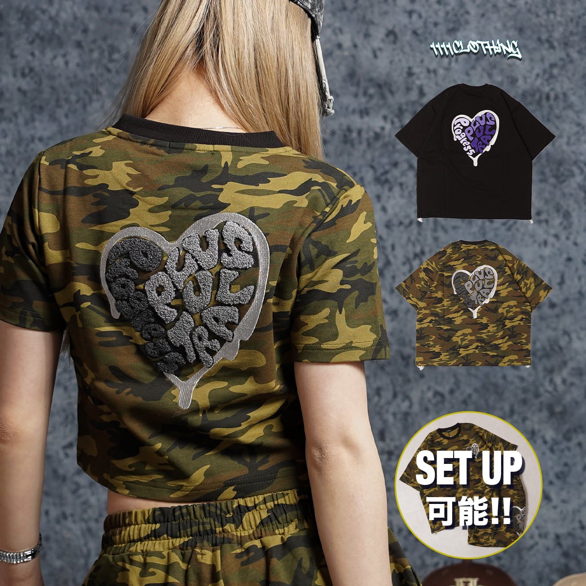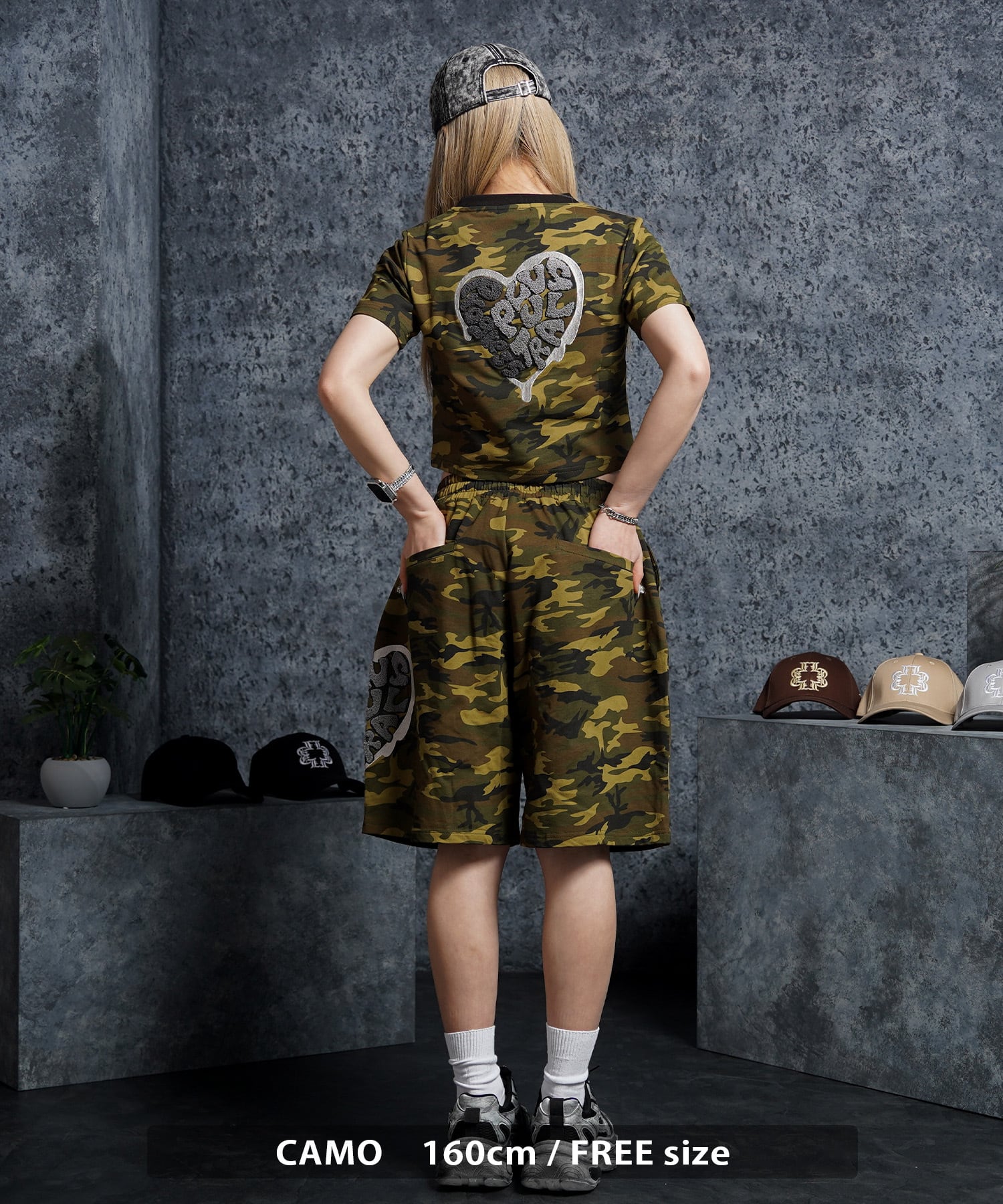 迷彩 カモ カモフラ カモフラージュ ロゴ刺繍 ハート セットアップ Tシャツ メンズ レディース トップス 半袖 シャツ 春 夏 春服 夏服 新作 トレンド