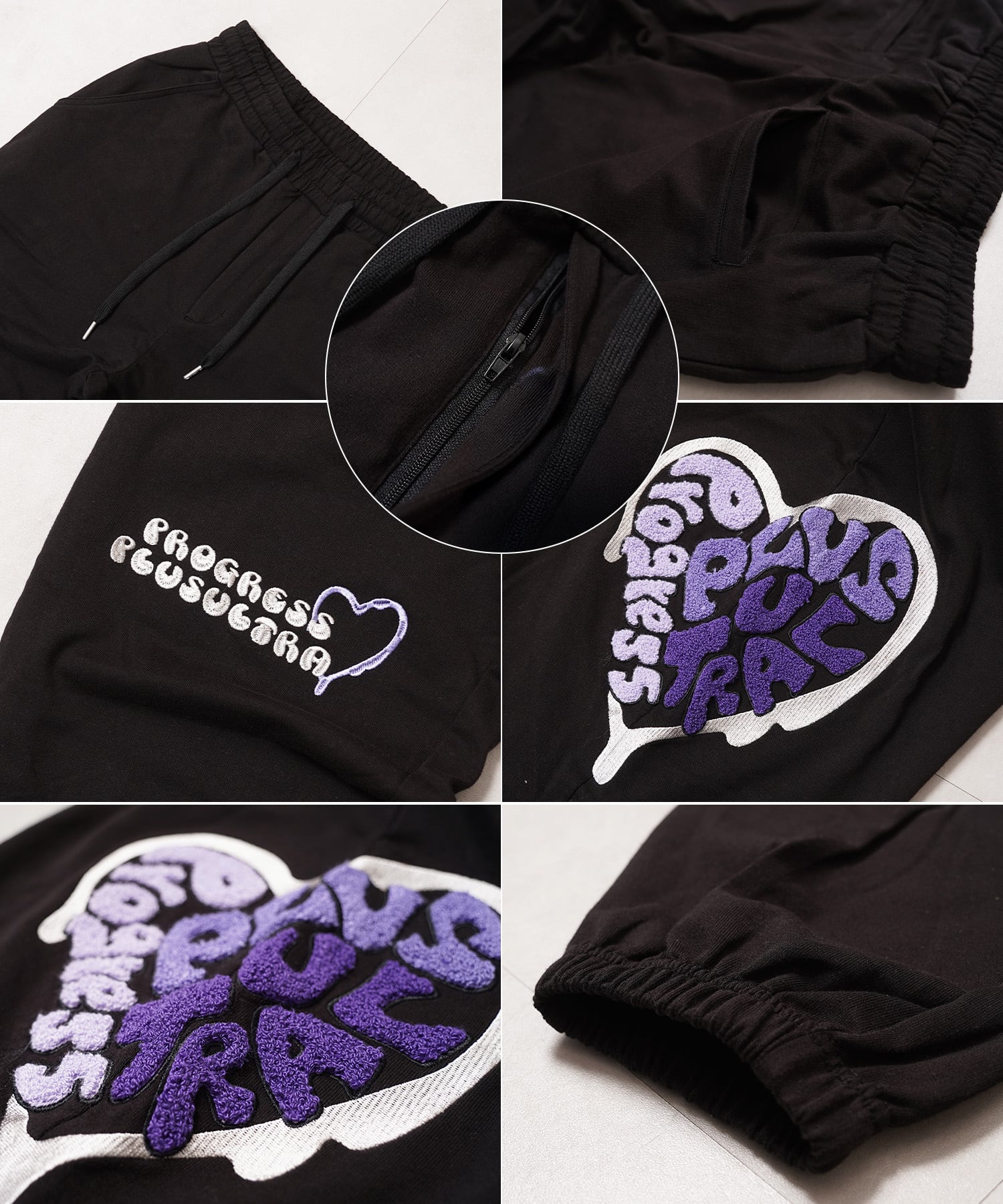 【1111clothing】Mini Fleece Heart Sagara Embroidery Sweatpants