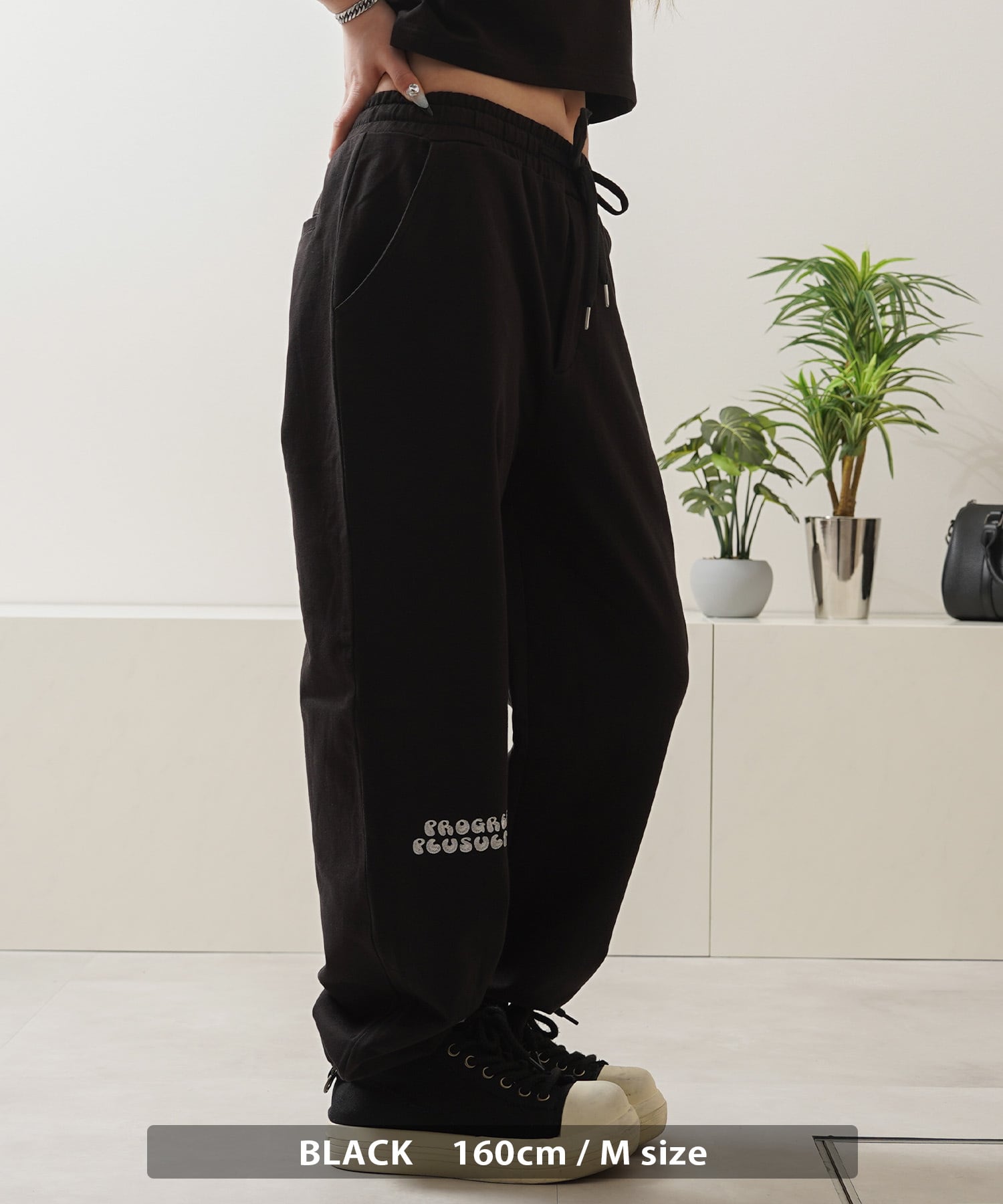 裾にはゴムが入っており、スニーカーとの相性も抜群なスッキリとしたシルエットを演出。