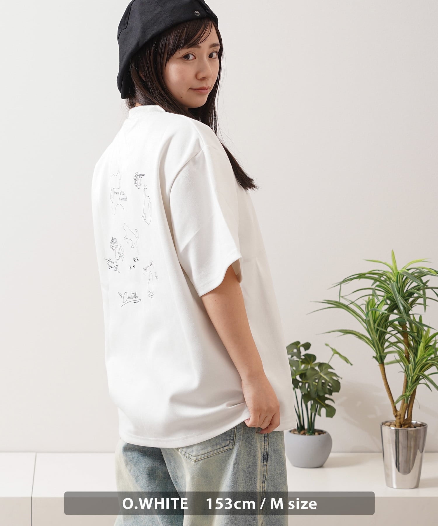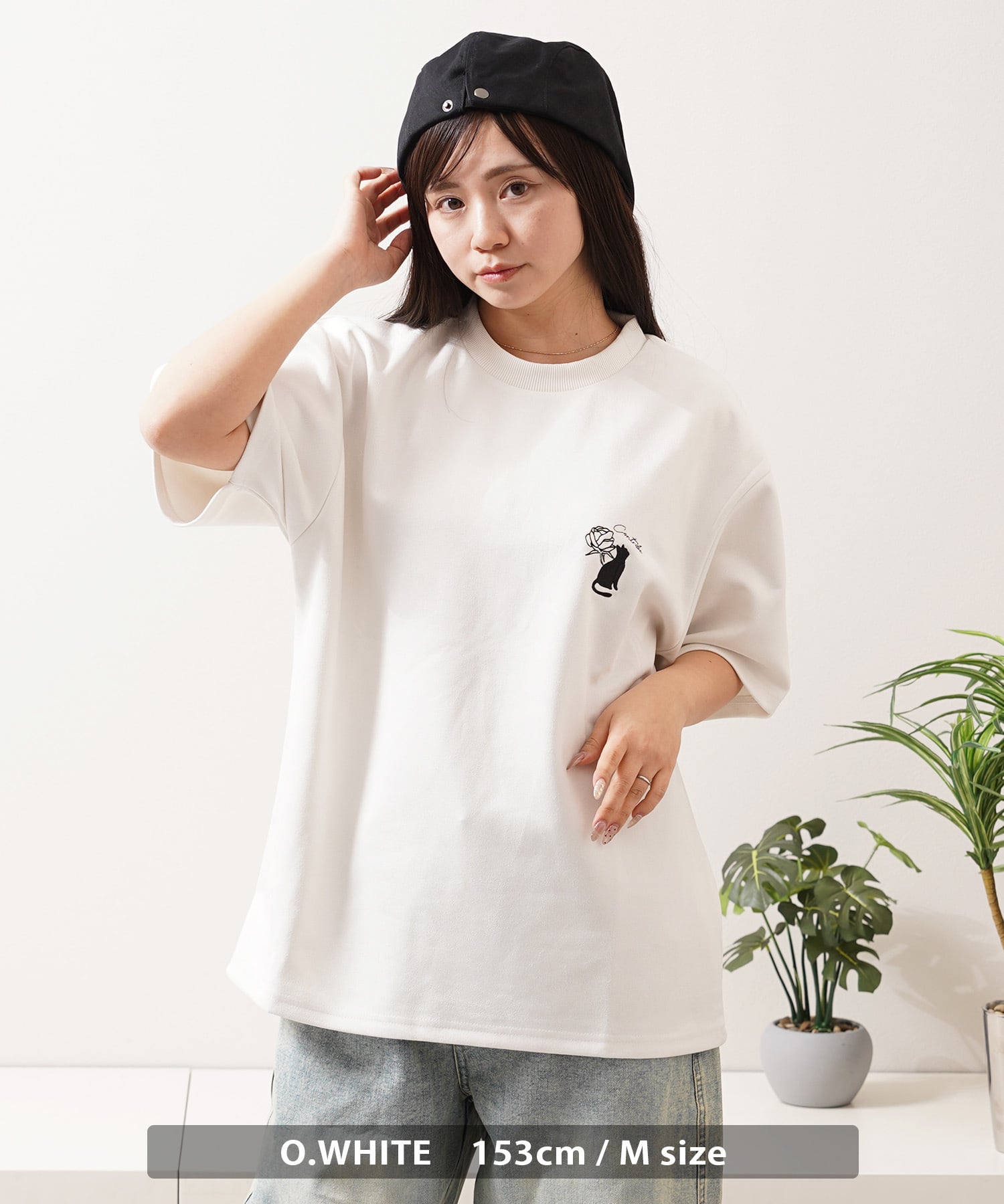 刺繍 アニマル ネコ 猫 花 エモーショナブル チル Tシャツ トップス メンズ レディース 半袖 白T 黒T オーバーサイズ ビッグシルエット 夏 夏服 新作 トレンド