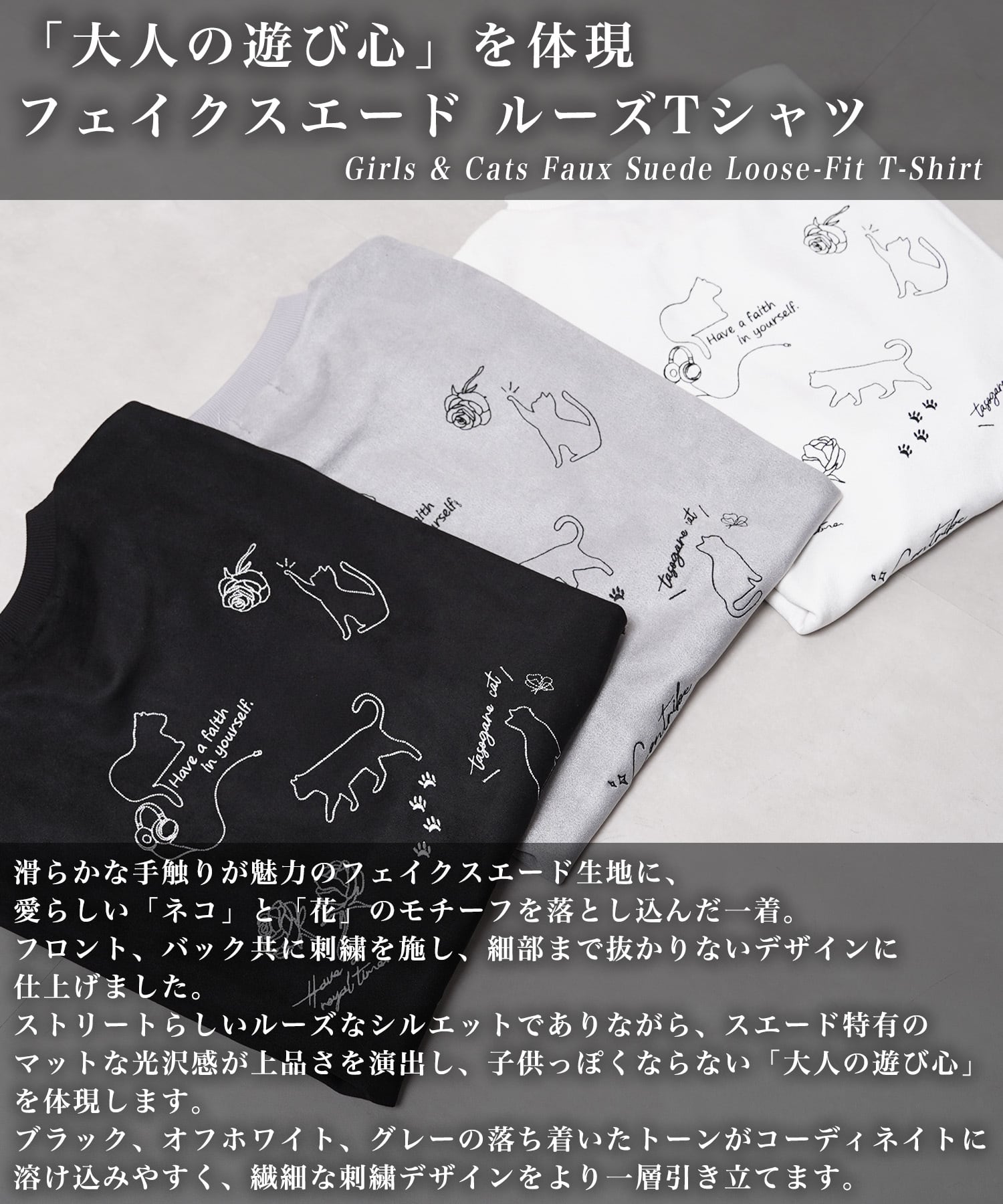 ◆ガール&ネコ フェイクスエード ルーズTee◆si-80700736