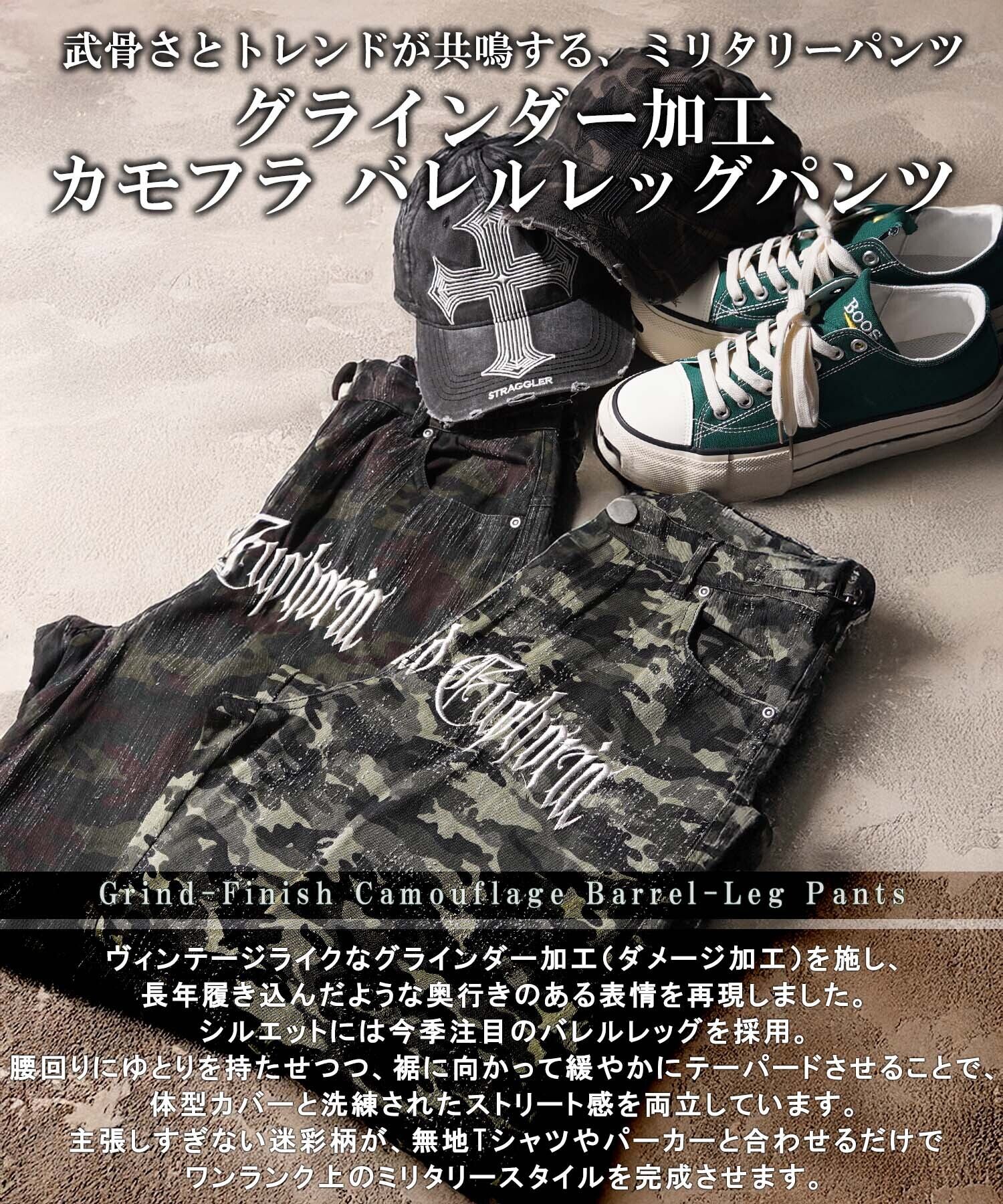 ◆グラインダー加工 カモフラ バレルレッグパンツ◆ng-63226