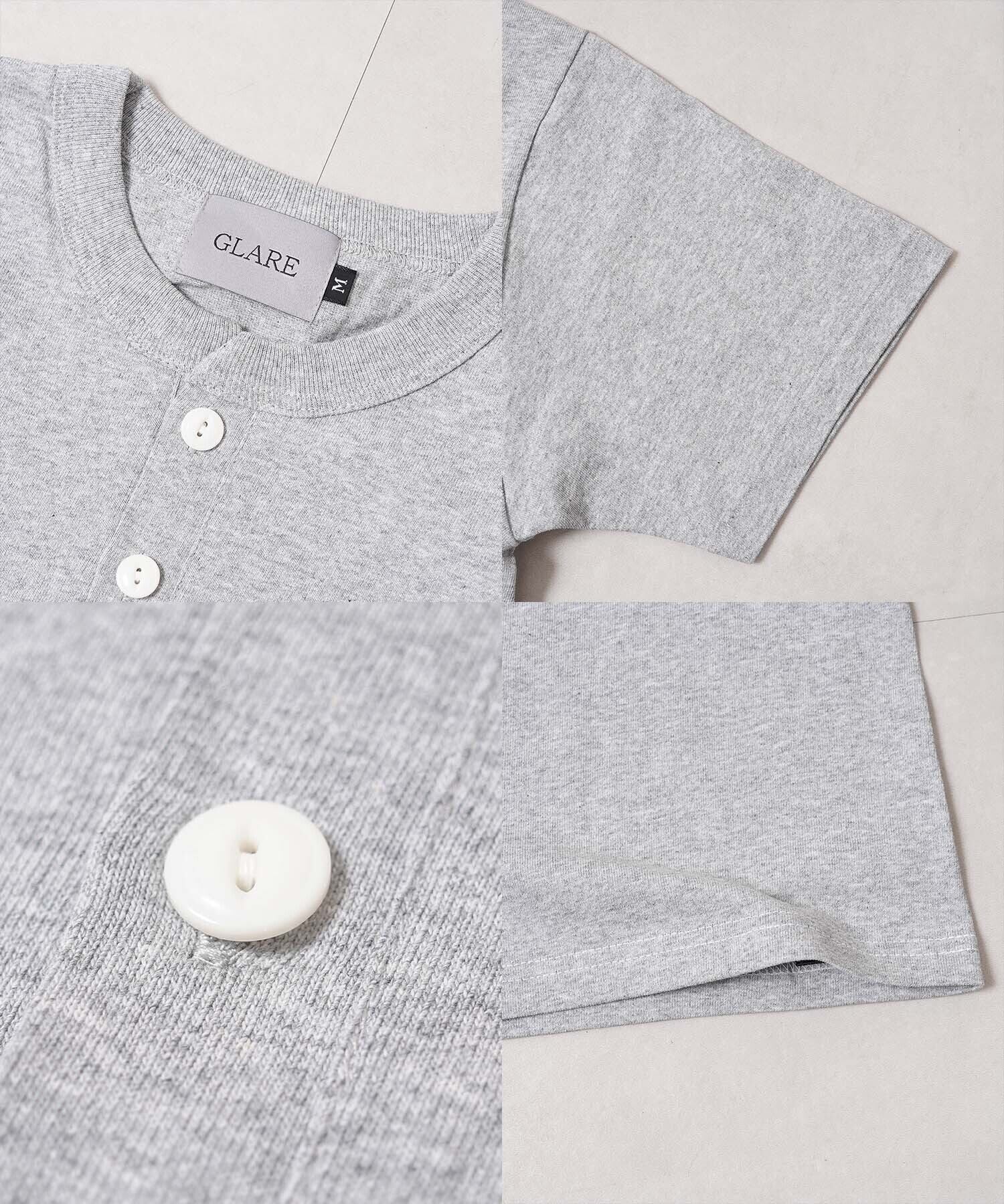 ヘンリーネック Tシャツ クロップド丈 短丈 メンズ レディース ユニセックス 綿100 OE天竺 厚手 無地 半袖 トップス 春夏 モード ストリート カジュアル GLARE グレア スタイルアップ 新作 トレンド 夏服