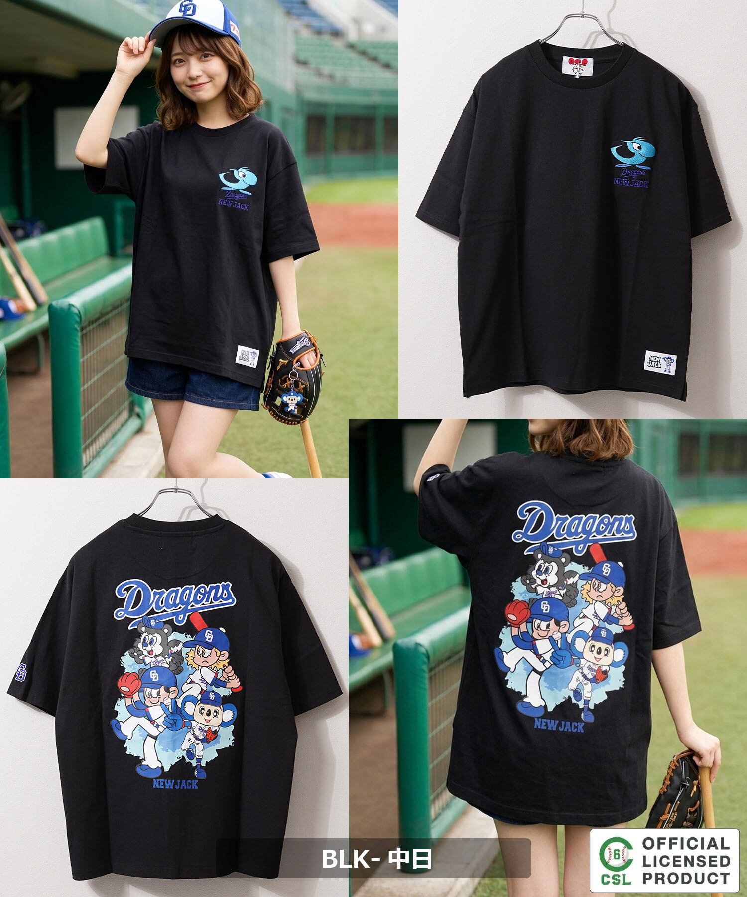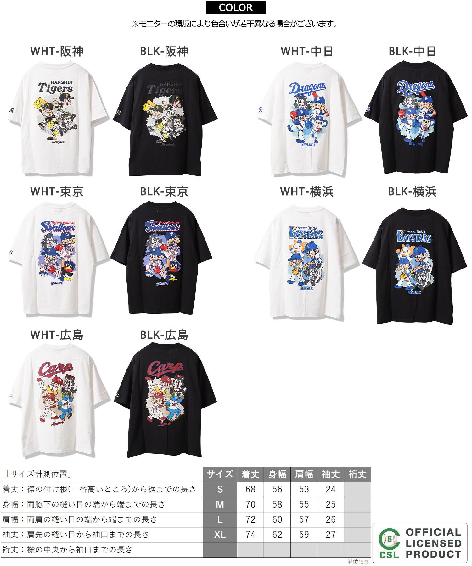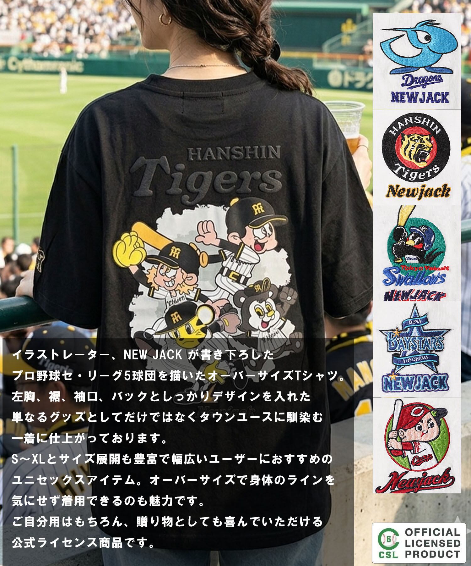 イラストレーター、NEW JACK が書き下ろしたプロ野球セ・リーグ5球団を描いたオーバーサイズTシャツ。