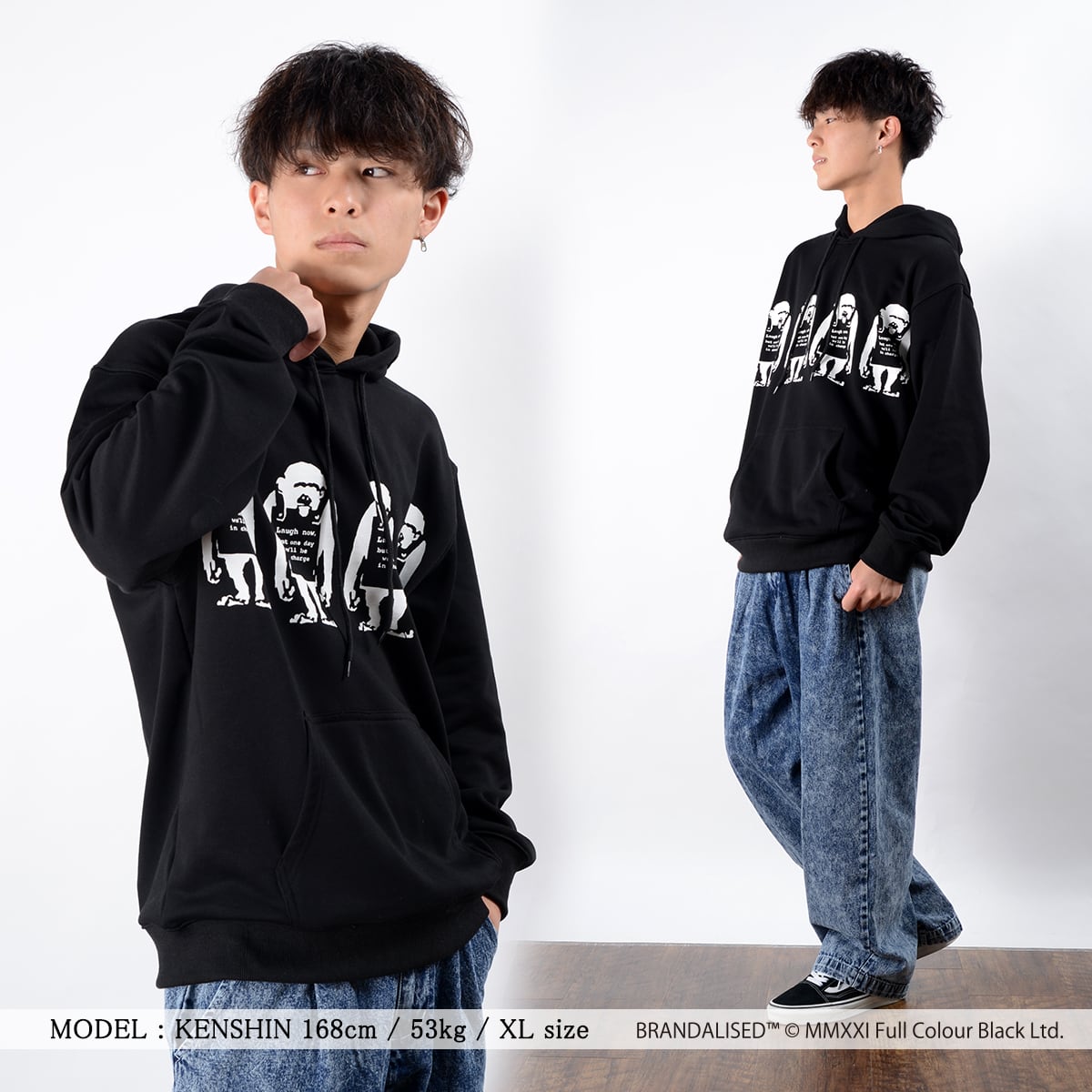 バンクシーが描いたチンパンジーを擬人化したキャラクターがキャッチーなプルオーバーパーカー。