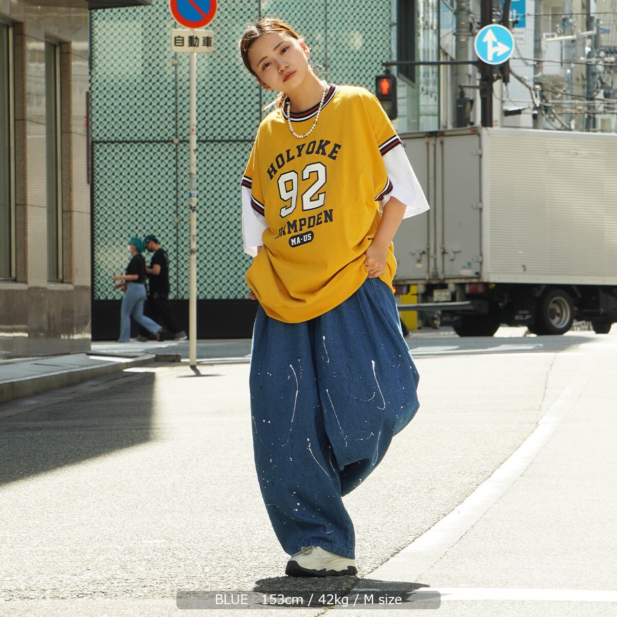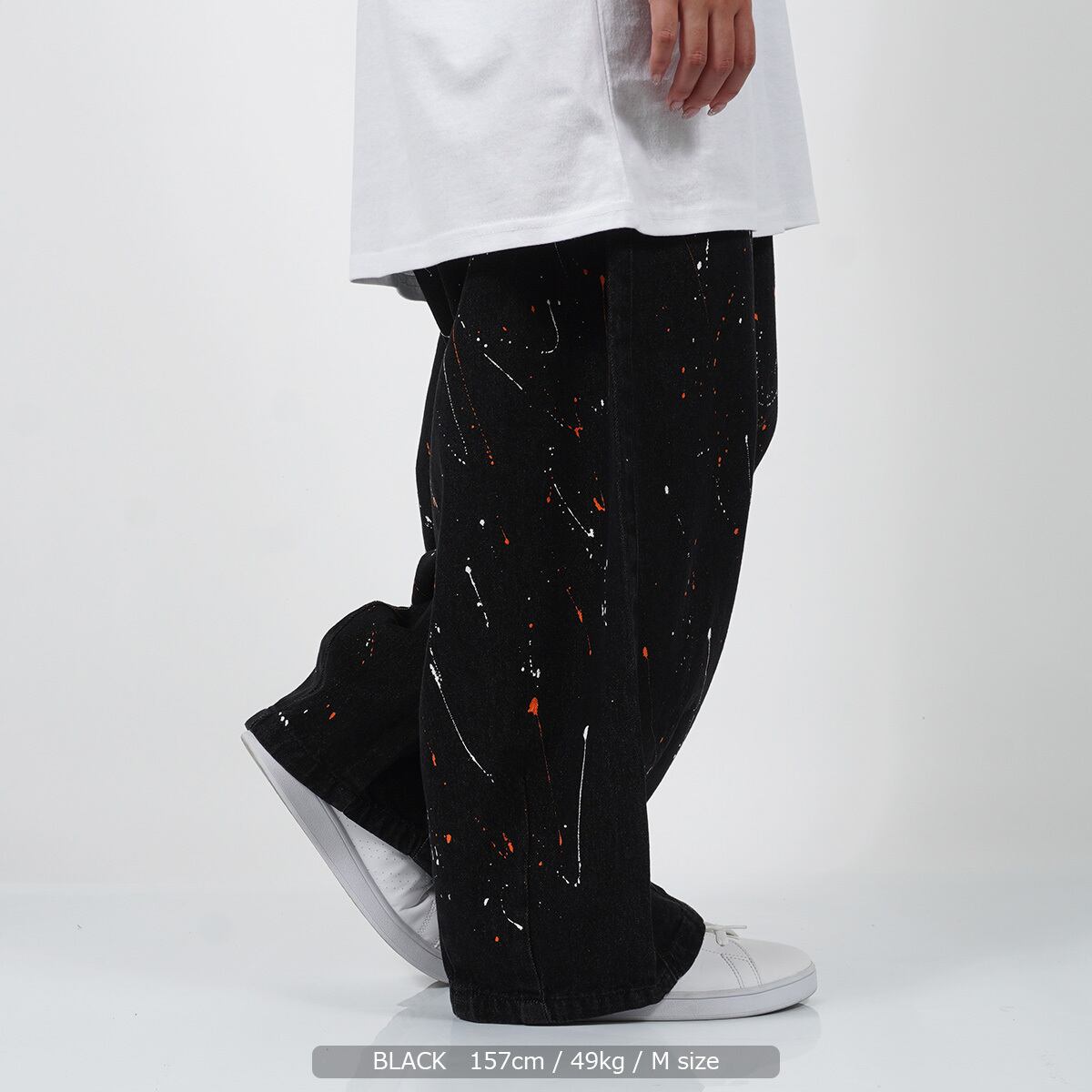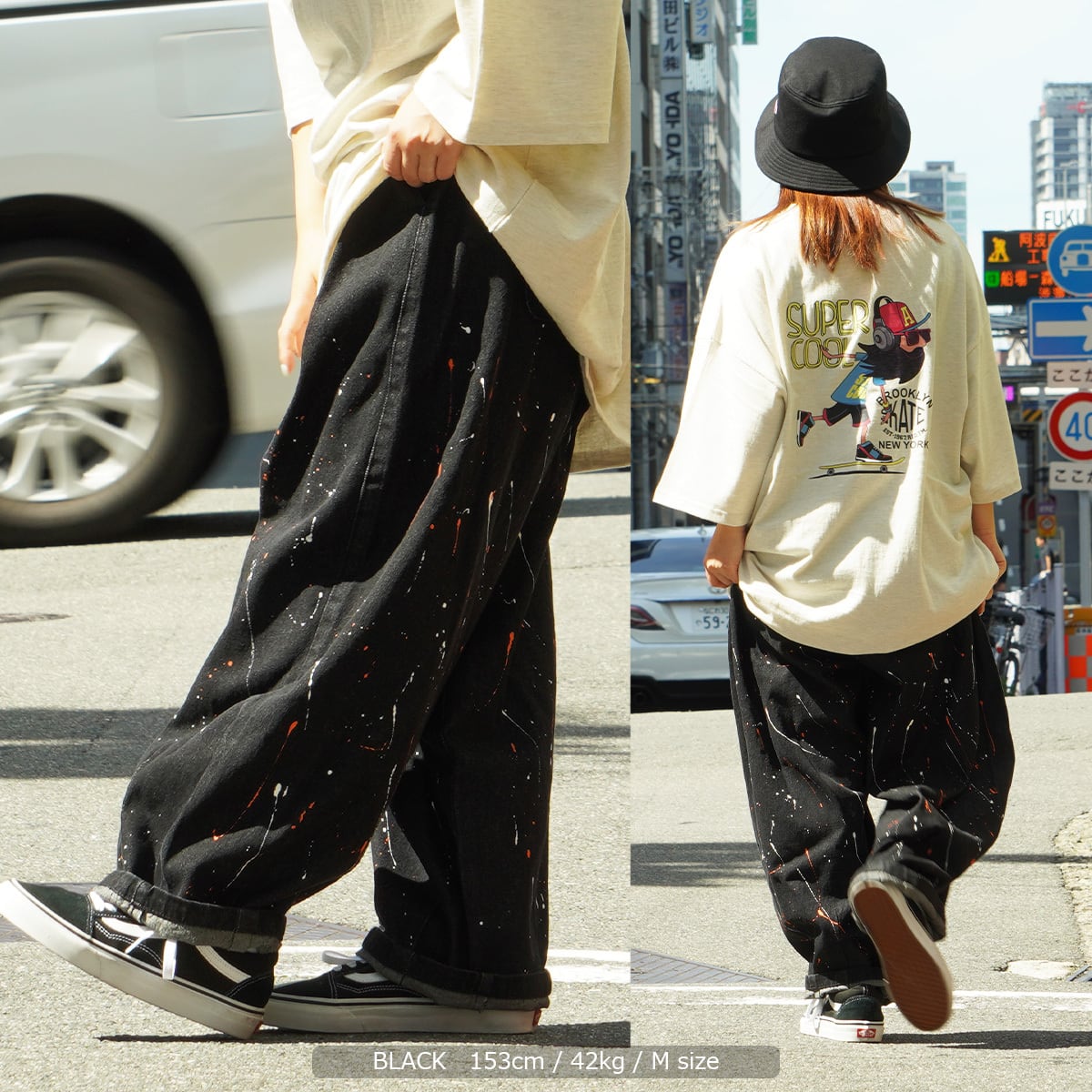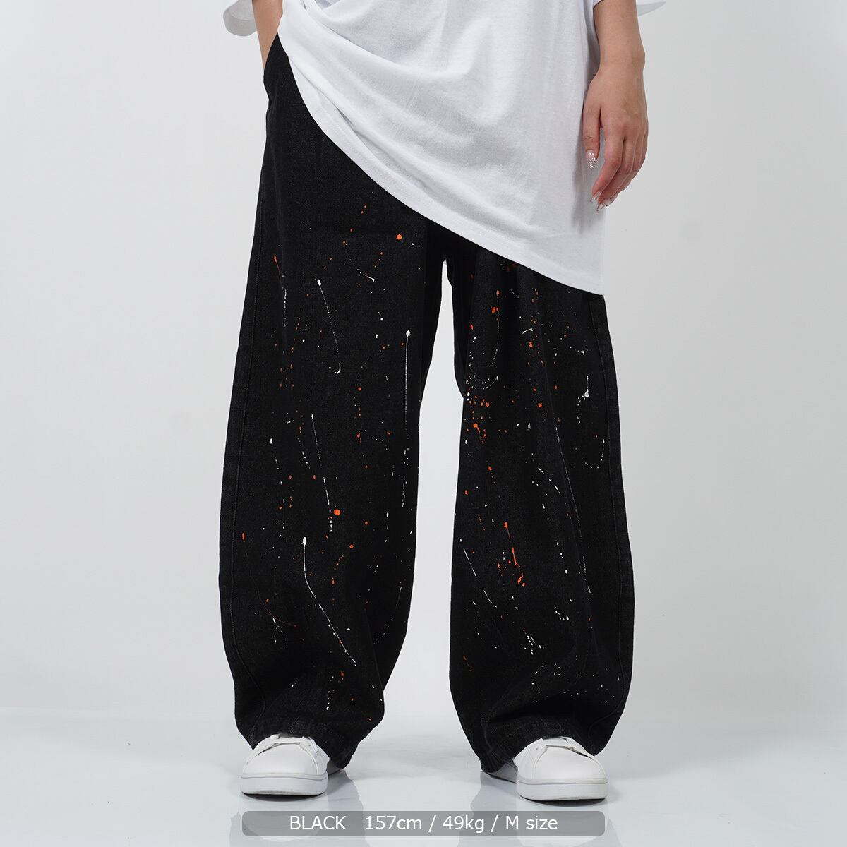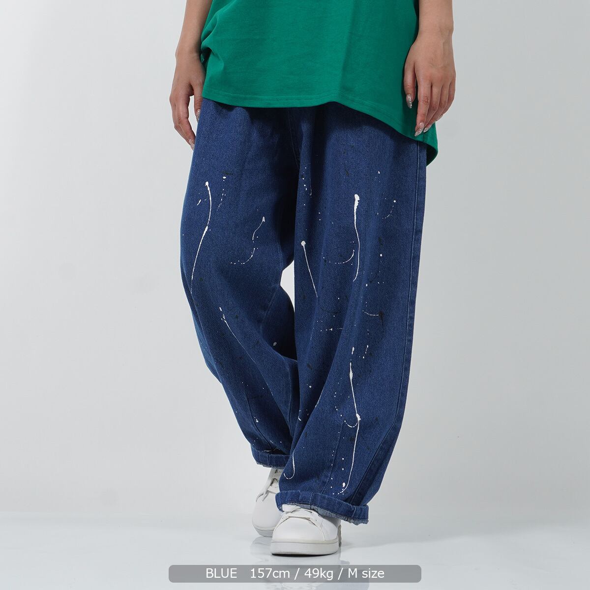 ◆ペイント ワイド バルーンパンツ◆ カツラギパンツ デニムパンツ ペンキ加工 カジュアル ストリートファッション 韓国 ファッション ペアルック カップル ペア 服 お揃い