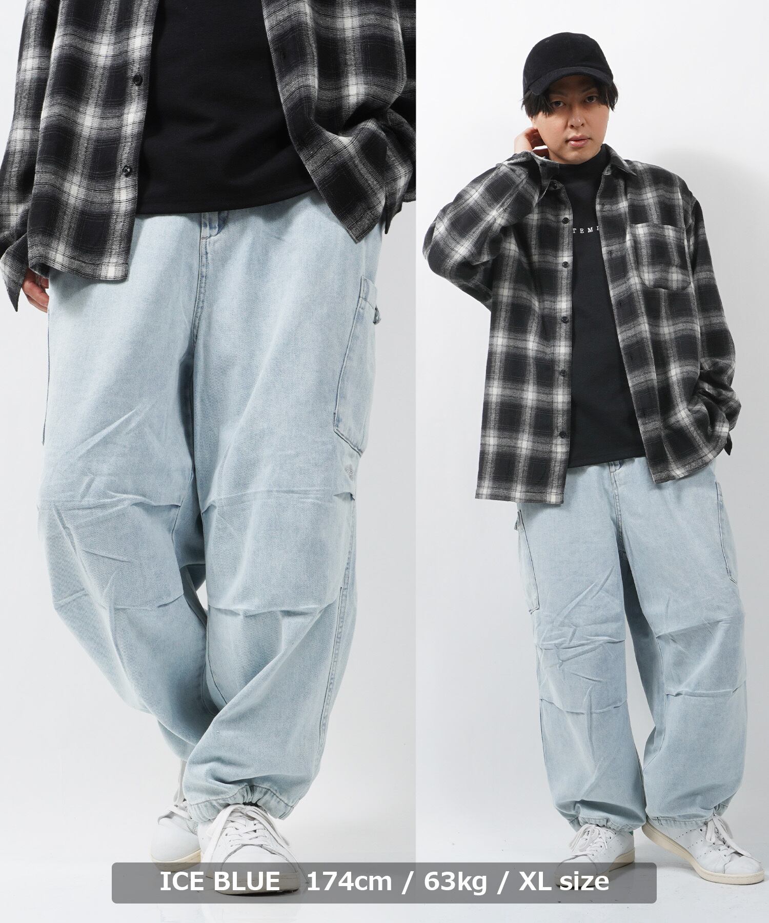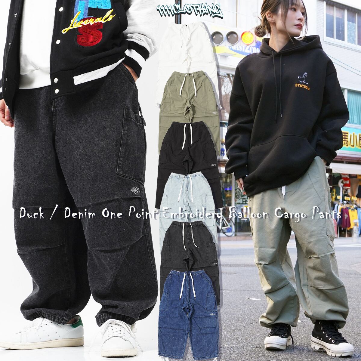 ダック / デニム ワンポイント刺繍 バルーンカーゴパンツ カジュアル ストリートファッション 韓国 ファッション ペアルック カップル ペア 服 お揃い 服 ストリート系 ブランド