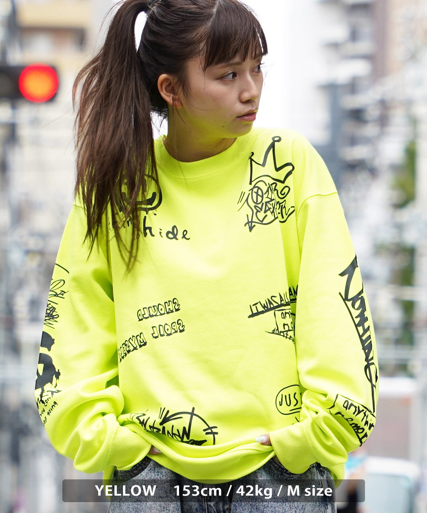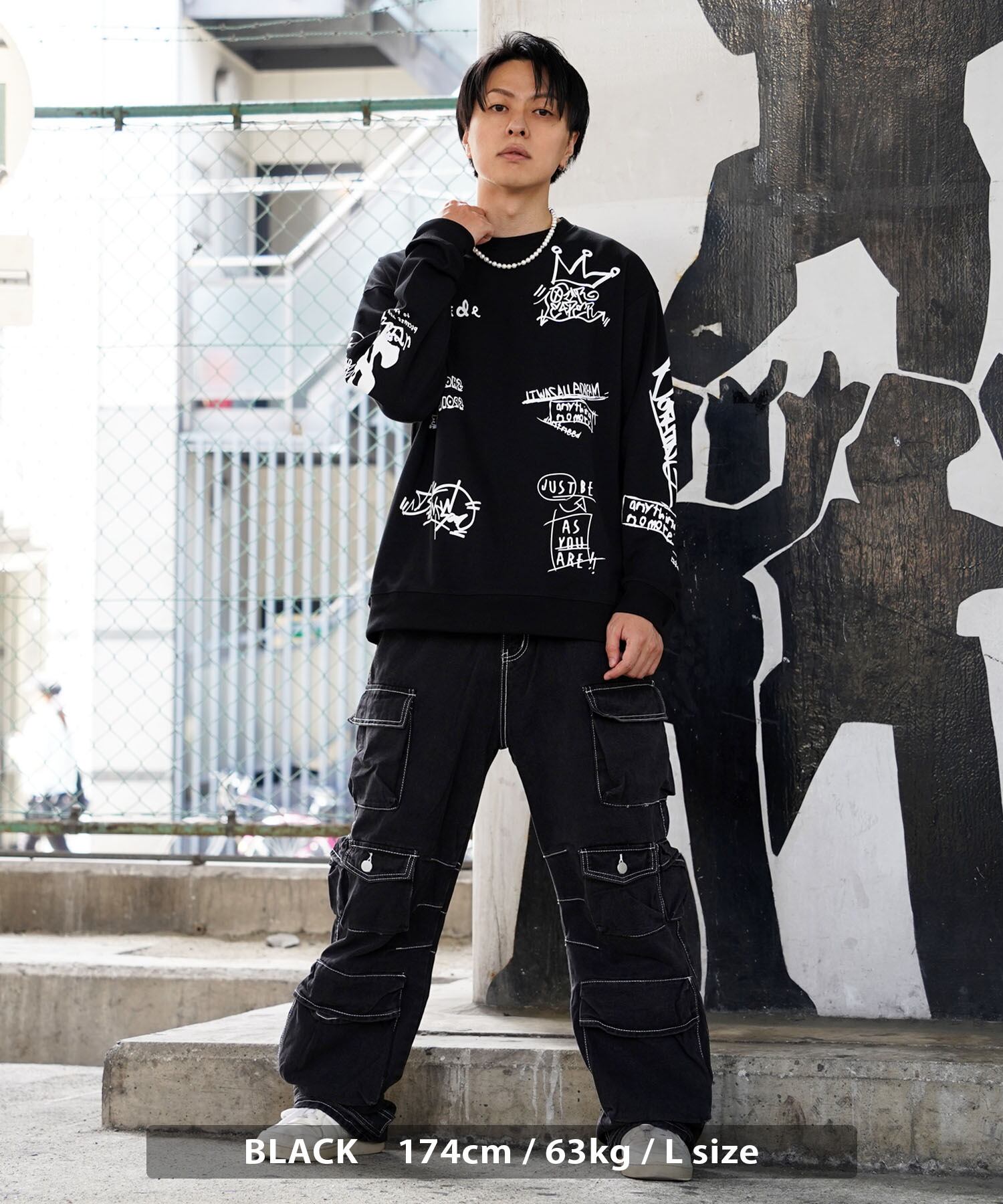 wi-319082 【 タギング 総柄 トレーナー 】ビッグシルエット カジュアル ストリートファッション 韓国 ファッション ペアルック カップル ペア 服 お揃い 服 アメカジ ストリート オーバーサイズ スウェット メンズ トレーナー レディース ビッグスウェット グラフィティ 落書き スマイル ニコちゃん プリント バックプリント トップス 長袖 大きいサイズ 秋 秋服 秋冬 冬 冬服 おしゃれ 韓国ファッション ストリート系 ブランド 白 黒 黄 M L ワンフォークロージング 1111clothing ワンフォー メンズファッション レディースファッション メンズ服 レディース服 ユニセックス 男女兼用 10代 20代 30代 彼氏 彼女 父の日 誕生日 誕プレ 誕生日プレゼント ギフト 記念日 バレンタインデー ホワイトデー クリスマス 孫 プレゼント クリスマスプレゼント 男の子 女の子 古着ミックス ダンス 衣装 ヒップホップ 韓国ファッション 韓国 ストリート ストリート系 服 アメカジ メンズ レディース 大人 かっこいい かわいい お洒落 リンクコーデ